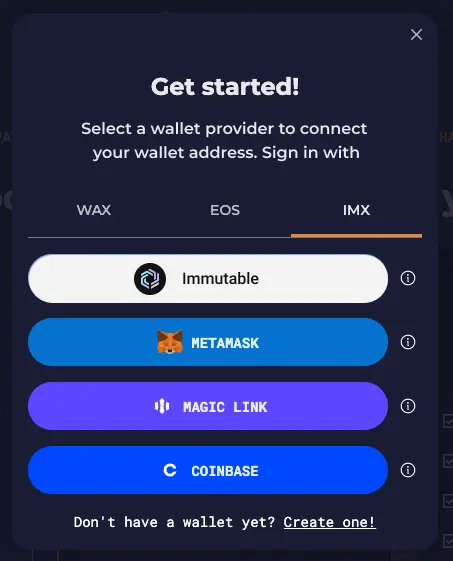 The text on your button should say “Sign in with Immutable” with a number of format options detailed below. You can download these SVG files and use as default buttons.