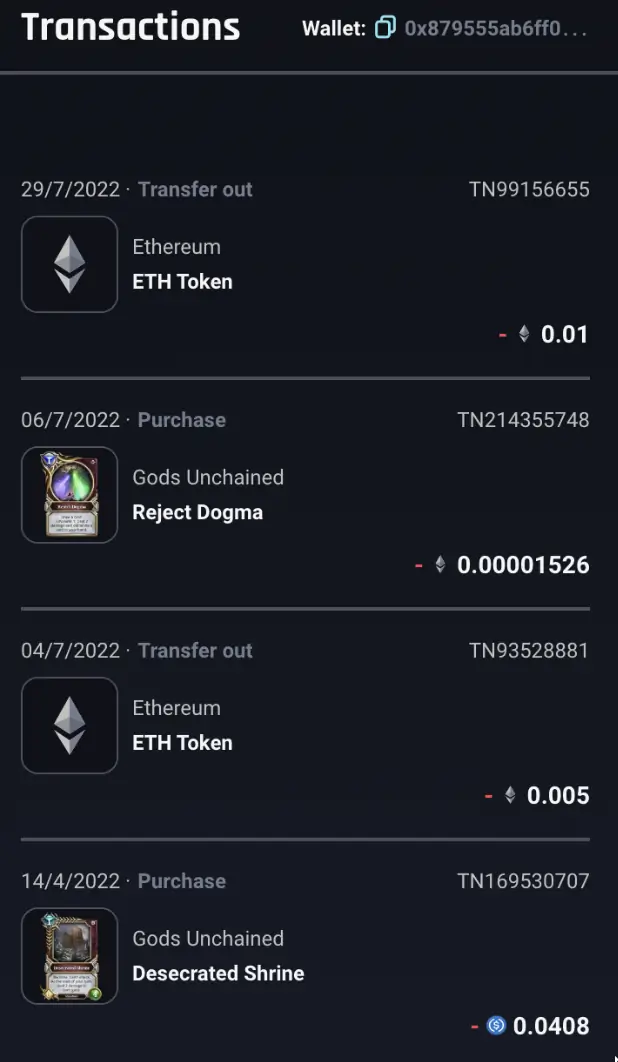 Transaction history