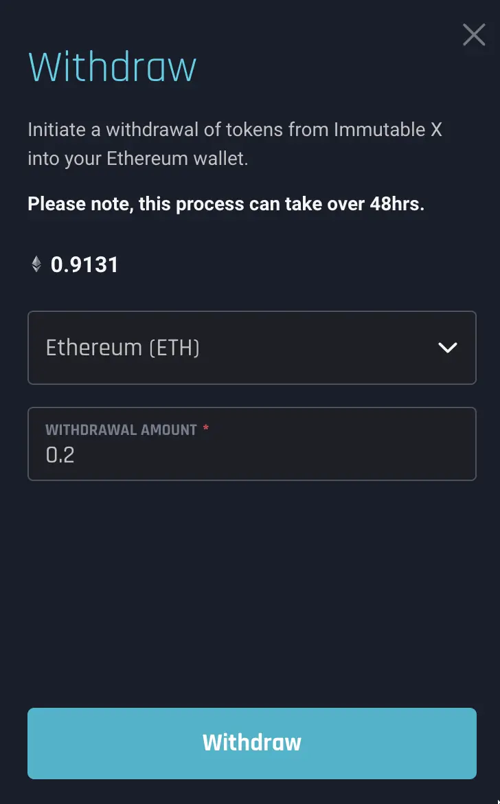 • Setting up an Immutable X layer 2 wallet key (only needed the first time a user connects with Immutable X - this is user registration)